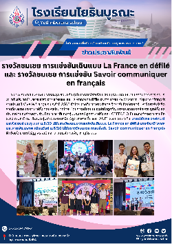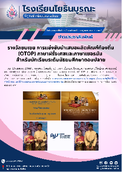 รางวัลชมเชย การแข่งขันนำเสนอผลิตภัณฑ์ท้องถิ่น (OTOP) ภาษาฝรั่งเศสและภาษาเยอรมัน สำหรับนักเรียนระดับมัธยมศึกษาตอนปลา...
